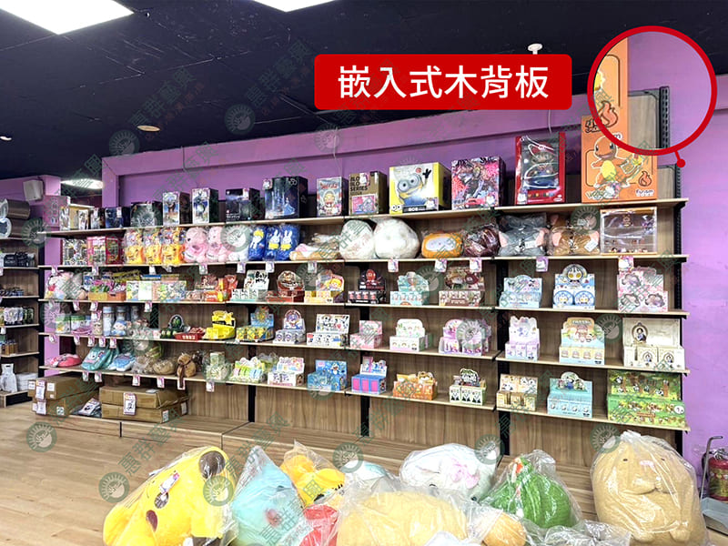 壁面嵌入式木背板陳列層板架