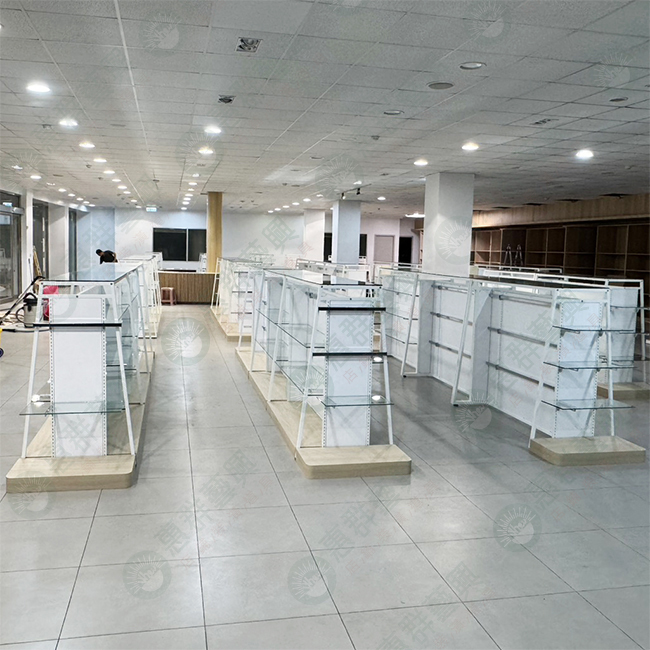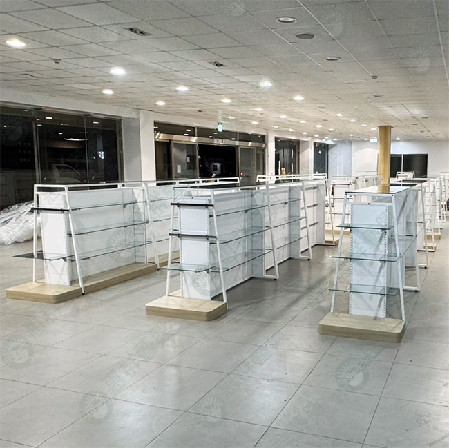 白框梯形中島玻璃端架/層板架
