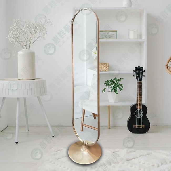 落地式圓盤造型圓弧金框立鏡